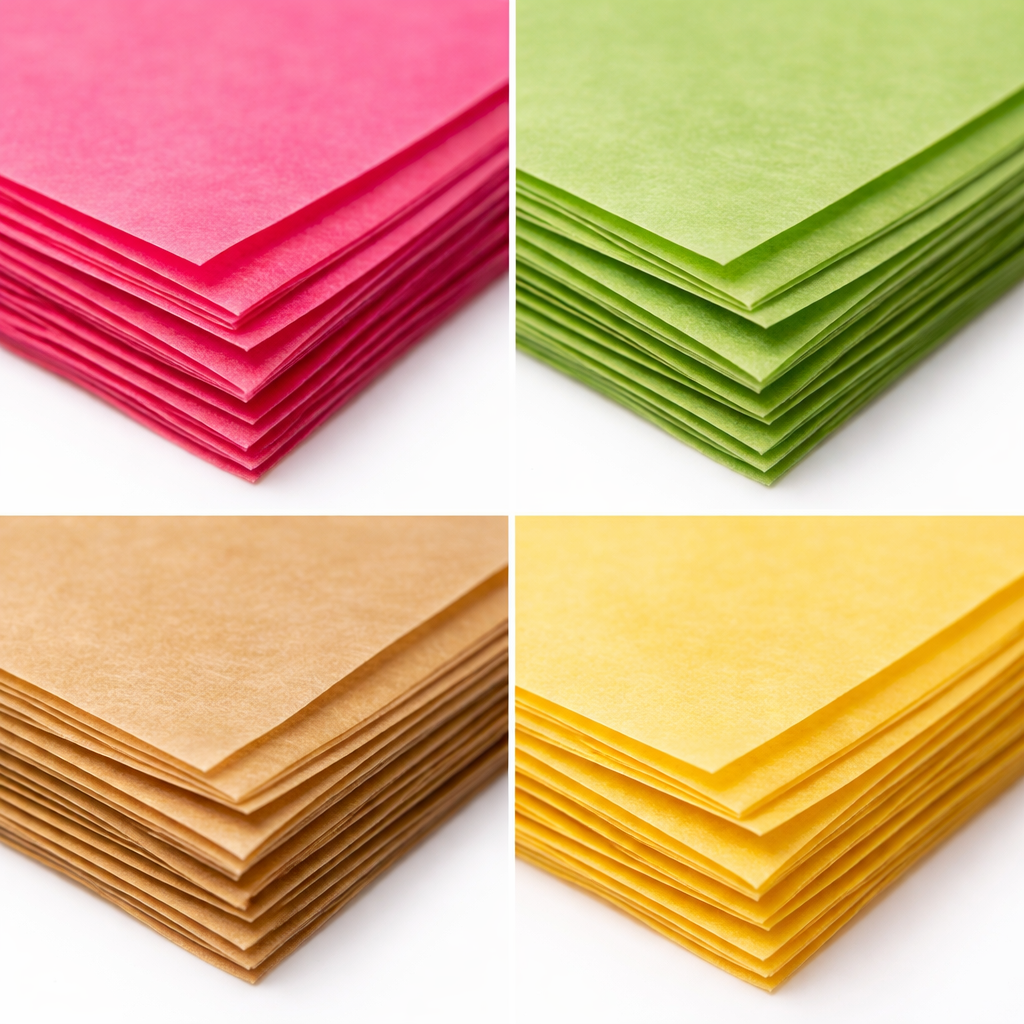 Our Greaseproof Paper is a high-density, thin barrier paper manufactured from slow-beaten cellulose (100% virgin pulp). It features limited grease penetration and high mechanical strength without the use of plastic coatings. Available in both natural and colored options, it is the ideal eco-friendly choice for wrapping fatty foods, baking, and decorative serving